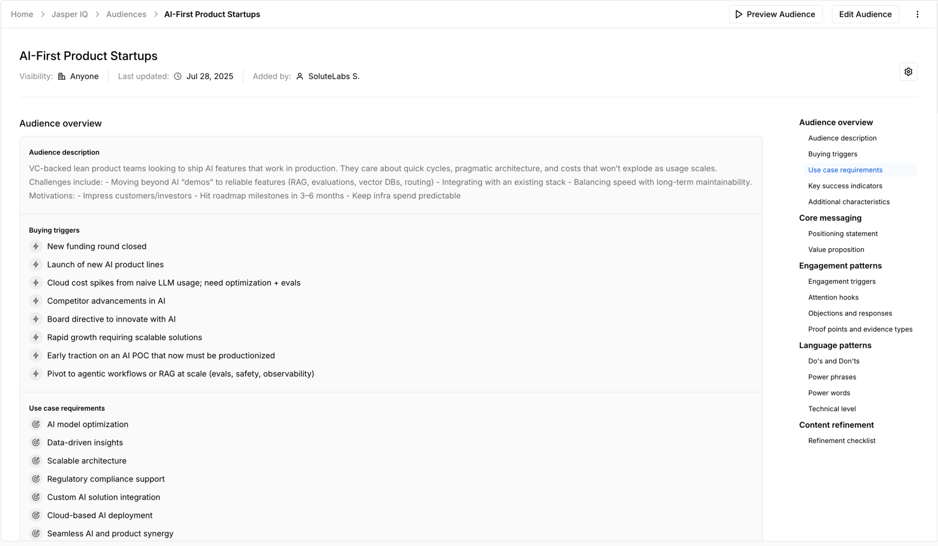 Create a reusable prompt template for your most common task (e.g., user support, product copy, feature specs).